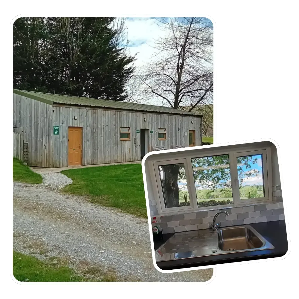 Our indoor washing up room has 3 sinks, with washing up liquid provided. To make the job a little more pleasant, the large windows offer views across Bishopdale. Here you will also find our tourist information area, a fridge and freezer, books and some activities such and jigsaws, playing cards, colouring books and crayons to use during your stay.